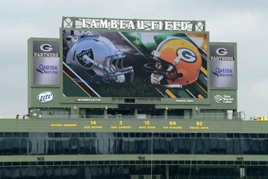 Jones was tasked with installing the large LED end zone scoreboards at the legendary Lambeau Field. Jones worked closely with Mitsubishi Electric, the architect, and the Green Bay Packers organization to install these massive LED scoreboards. Jones also was contracted to fabricate and install the cladding and the corrugated metal panels around the scoreboards.